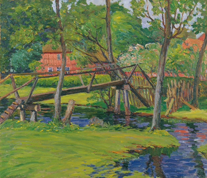 Der kleine ursprüngliche Ort an der Wümme wurde ihre Heimat, in der sie eine unübersehbare Zahl von ausdrucksvollen Bildern schuf. Sie hielt die Besonderheiten des Ortes fest wie diesen Melkersteg über die Klosterwahrlake am Dieker Ort. Schilling setzte ihre Bilder wie die Pointillisten in Paris aus vielen einzelnen Strichen zusammen, bevorzugte dabei leuchtende Primärfarben.