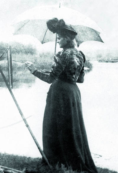 Emma Eibler beim Malen im Freien, Foto um 1910