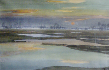 Christian Modersohn, Überschwemmte Wiesen, 1974, Aquarell