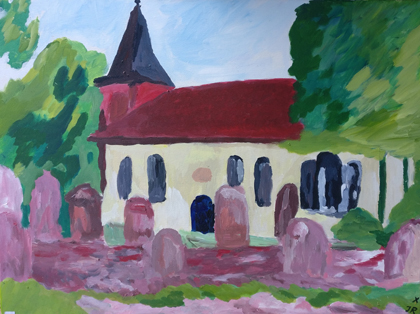 Jochen Richter, Fischerhuder Kirche, 2022, Acryl/Leinwand