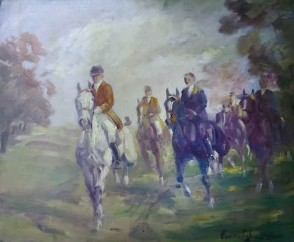 Kurt Glauber, Hubertusjagd, um 1940, Öl/Hartfaser