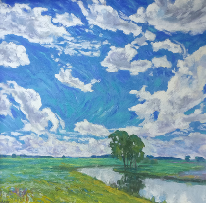 Franz Kaaz, Hoher Himmel über der Wümme, 2003, Öl/Hartfaser