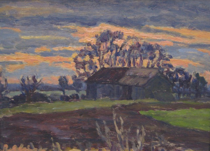 Elke Rehfinger, Scheune vor Sonnenuntergang, 1990